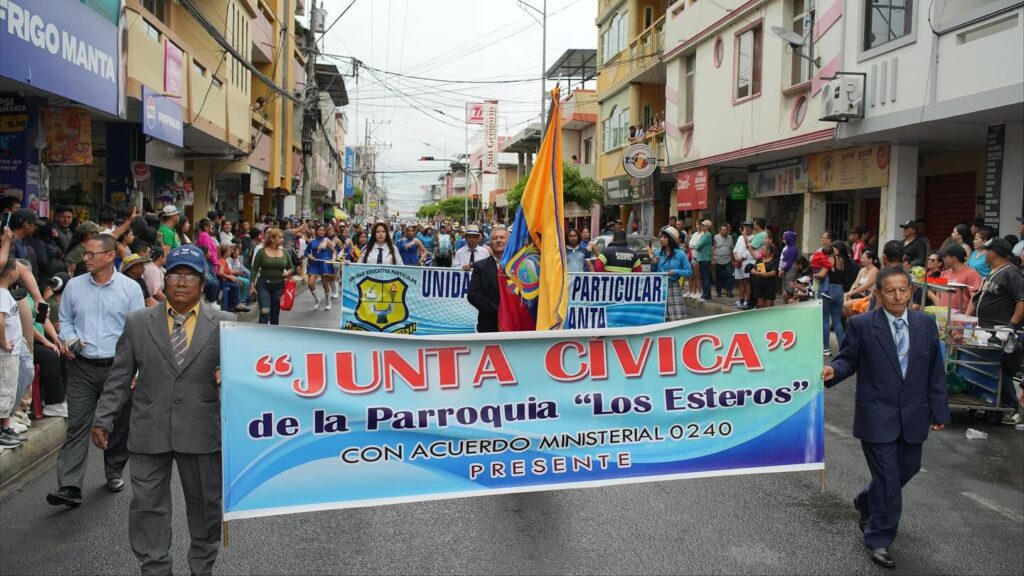 La parroquia Los Esteros celebró su aniversario con un desfile lleno de la energía de dirigentes, asociaciones, Junta Cívica e instituciones educativas de la parroquia, que caminaron juntos para rendirle homenaje.