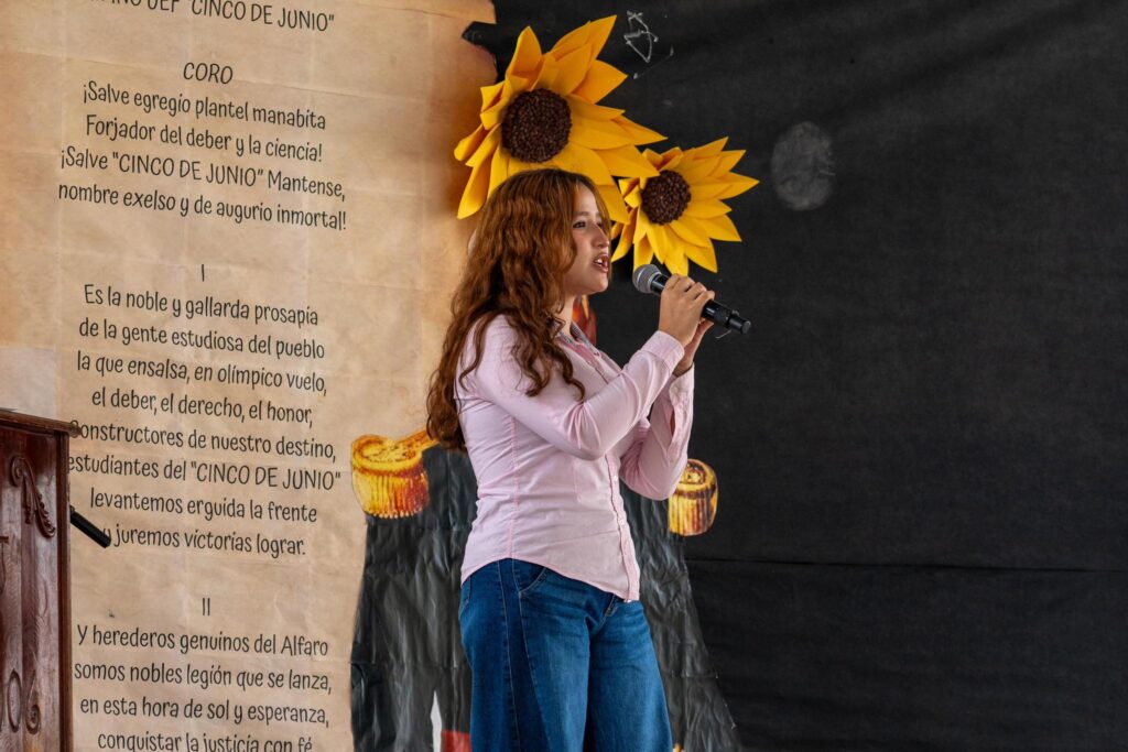 La mañana estaba fresca en los patios de la Unidad Educativa Cinco de Junio, este domingo 14 de septiembre; de pronto, el leve frío con que amaneció fue equilibrado con la calidez del canto de 12 de sus estudiantes, que subieron al escenario unos motivados y otros algo nerviosos, pero valientes e inspirados cuando interpretaron sus canciones en el festival musical Así Canta el Cinco.