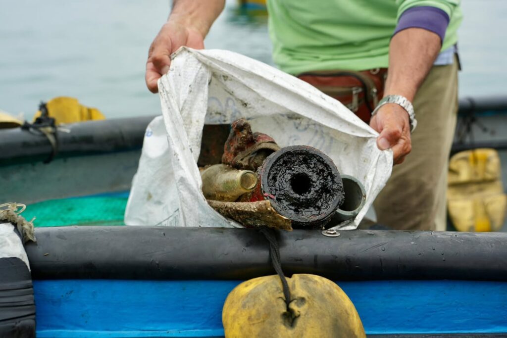 Antonio fue parte de la legión de voluntarios participantes en la limpieza subacuática de la rada del puerto de Manta, en la que se sacaron 800 libras de desechos, entre ellos cosas tan tóxicas como una pila alcalina, que puede contaminar hasta 175 mil litros de agua.