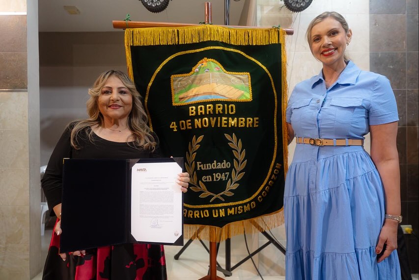 “Cada barrio que avanza, engrandece a Manta. Las familias del 4 de Noviembre son ejemplo de trabajo y de amor por su ciudad”, dijo la alcaldesa Marciana Valdivieso en este acto, donde hubo develación del estandarte, coronación de reinas y reconocimientos.