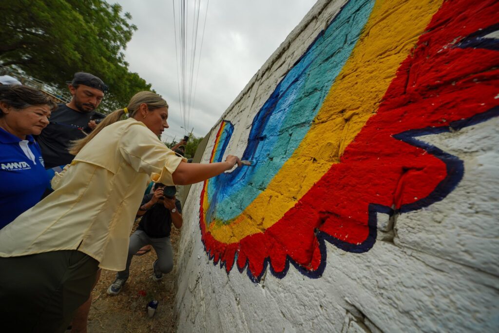 Y entre otras actividades, como la atención médica y veterinaria, fue pintado un mural de alas multicolores por usuarias de Casa de la Mujer, a través de “Dejando huellas”, una actividad de la Agenda Morada. Esta figura simboliza libertad, transformación y alegría de vivir.