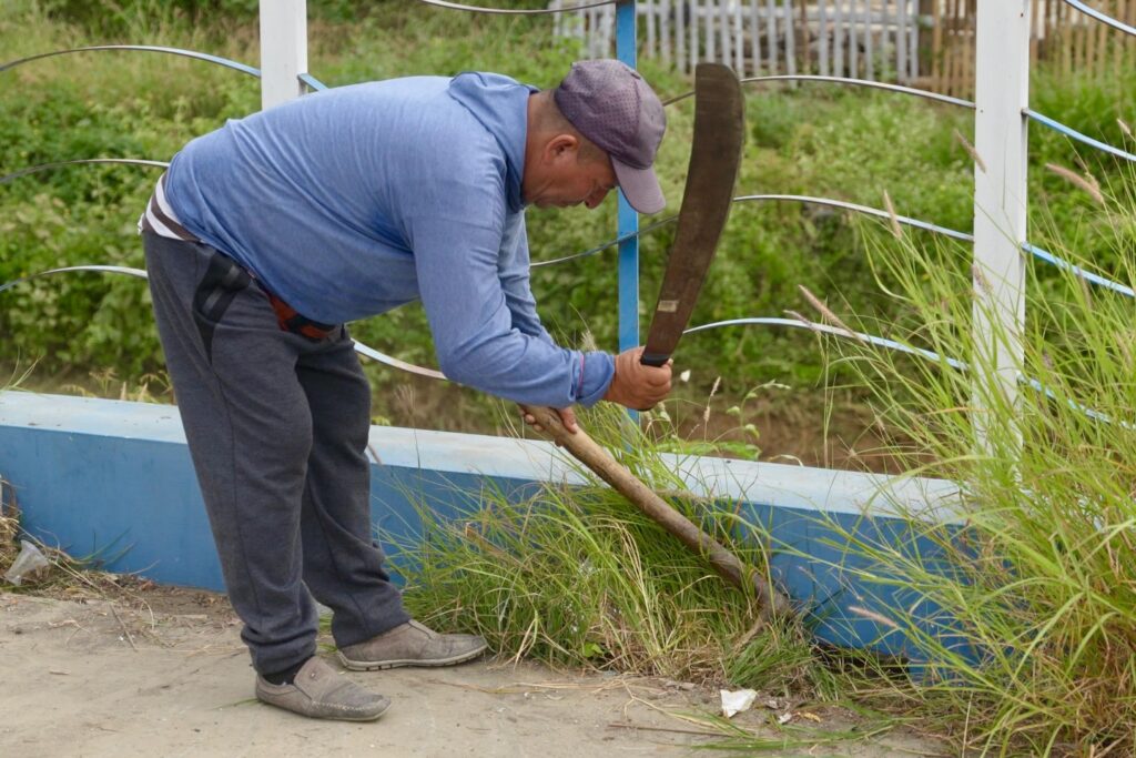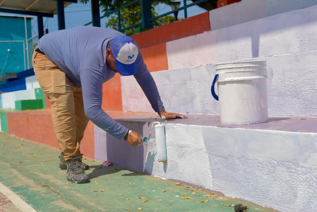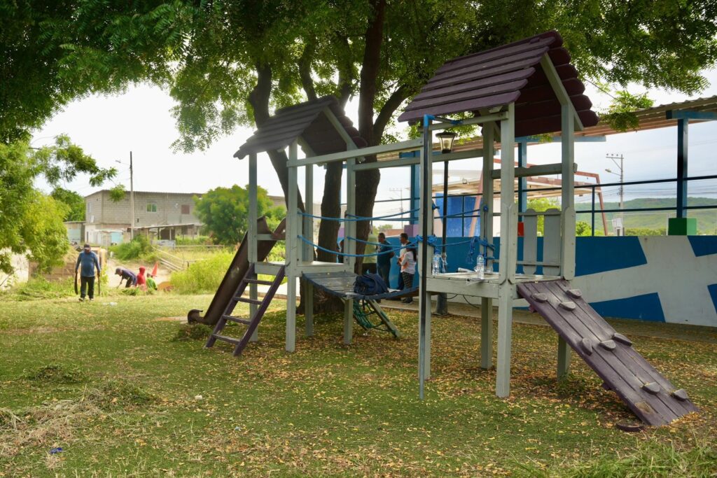 Con maquinaria se retiró la maleza y sedimentos del brazo de río que separa a la escuela Batalla de Carabobo con la Unidad Educativa San Juan y el parque. Al mismo tiempo, nuestros diestros macheteros desbrozaban los alrededores y ágiles pintores remarcaban y ponían nuevo color a la cancha.