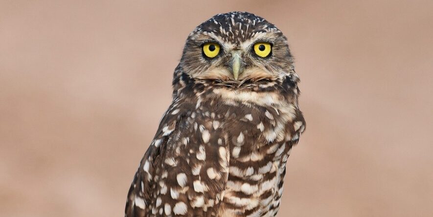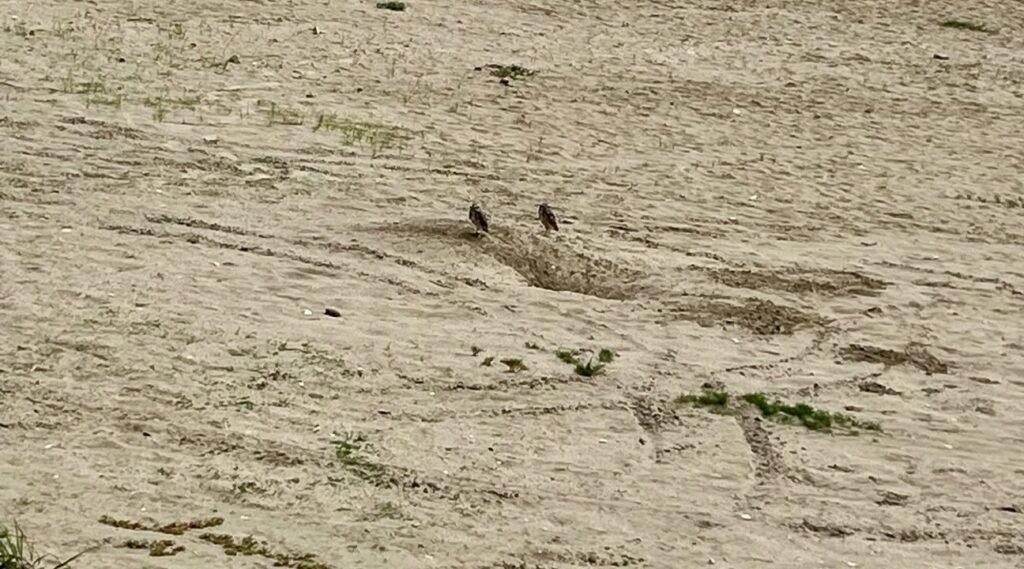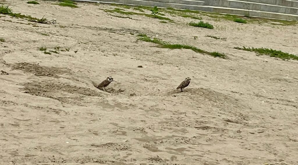 Con sus sagaces ojos amarillos atentos a cualquier movimiento, asi encontramos a una pareja de buhos terrestres (Athene cunicularia) en la playita del Megaparque Centenario Agustín Intriago, este 16 de enero, custodiando su madriguera revestida con estiércol y huesos para atraer insectos y ahuyentar depredadores.