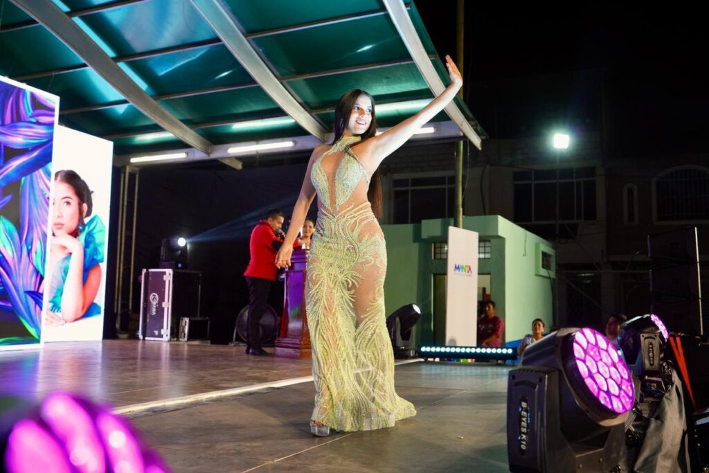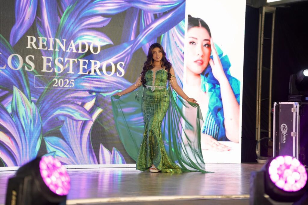 Con elegancia, seguridad y una sonrisa que encantó a todos, Ashly Moncayo se adueñó de la pasarela y conquistó al jurado, convirtiéndose en la nueva reina de la parroquia Los Esteros, este sábado 4 de octubre.