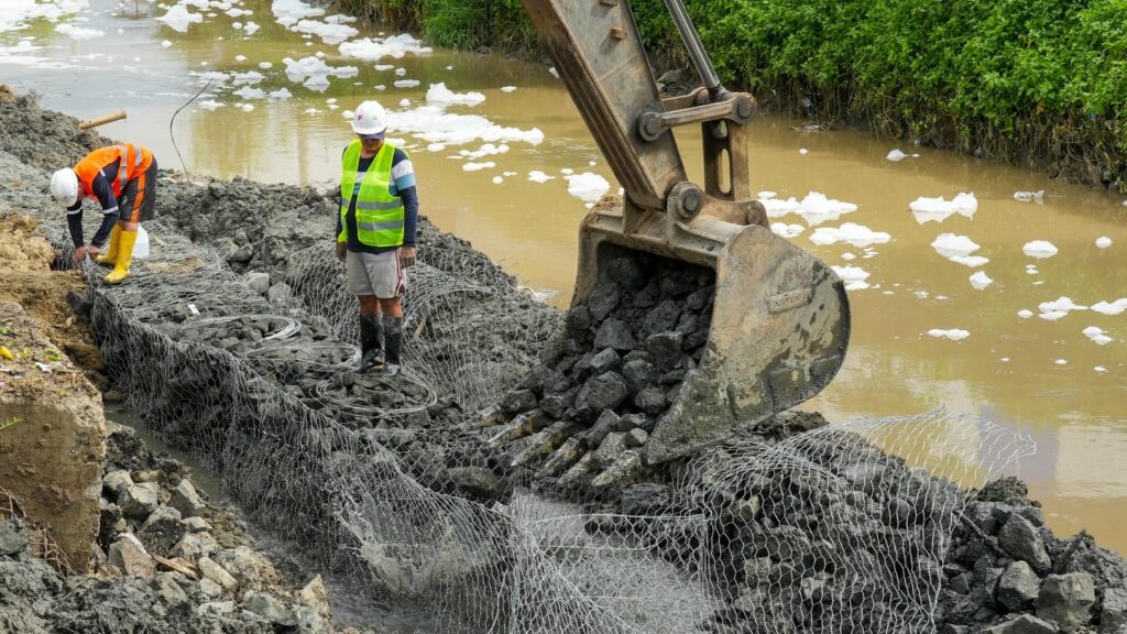 Como parte de las acciones de nuestro Plan Invierno, avanzamos en la reconstrucción de los muros de gaviones en la calle J1, entre los barrios Miraflores y Tarqui Central.
