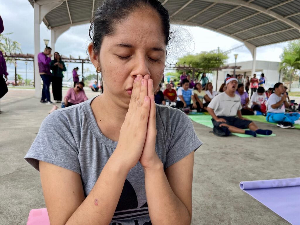 ”Poniendo atención a la respiración y juntamos las manos en el centro del pecho; eso, representa el aquí y el ahora”, es la primera instrucción que dió Liz Arteaga, instructora de yoga, al empezar su clase este viernes 5 de diciembre.