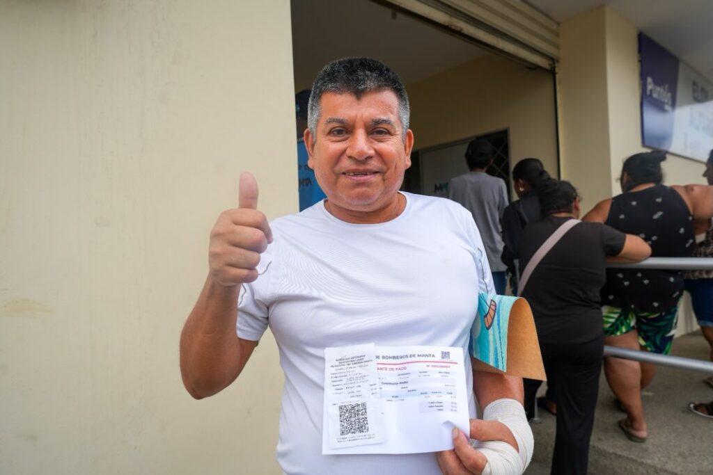 Jonathan Holguín acudió a la sede del Gobierno Parroquial de Santa Marianita y Blanca Pachay al Cuerpo de Bomberos de San Mateo, para realizar sus pagos prediales y así cumplir con Manta.