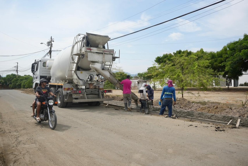 Actualmente, la maquinaria del cambio trabaja en la fundición de bordillos tipo cuneta, como parte de las labores previas al asfaltado de la vía, que comprenderá una extensión de 600 metros lineales.